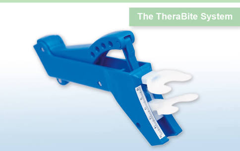 The surgeon also ordered a piece of equipment called a TheraBite. It came from Melbourne, which was the only one in the country at the time. The TheraBite was a bizarre little contraption to stretch my jaw open. Two pads were placed between my teeth and a family member pushed on a lever forcing my jaw open.
