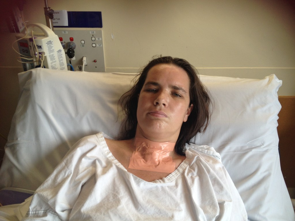Monday rolled around and suddenly it was time for the removal of my trachy. The prospect of having it out was both exciting and terrifying in equal parts. On the plus side, removing the trache was a huge step forward. It was a sign that I was much better than I had been. I was now able to maintain my own airway and protect my lungs from unwanted fluid. It also meant that I could be considered for the rehabilitation ward.